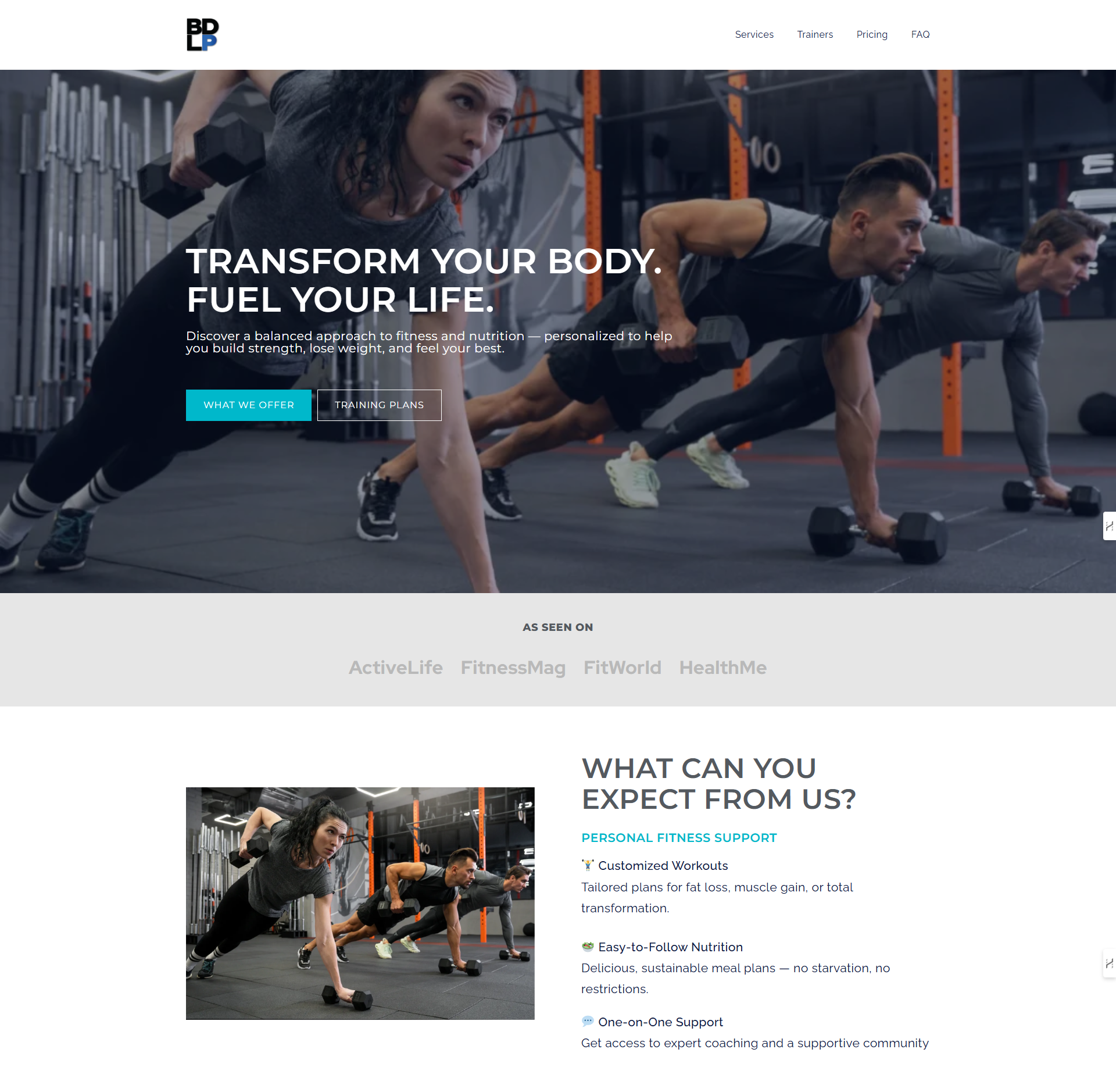 This fitness landing page was built entirely using BDLP Theme’s custom blocks and patterns — no page builder, no custom code.